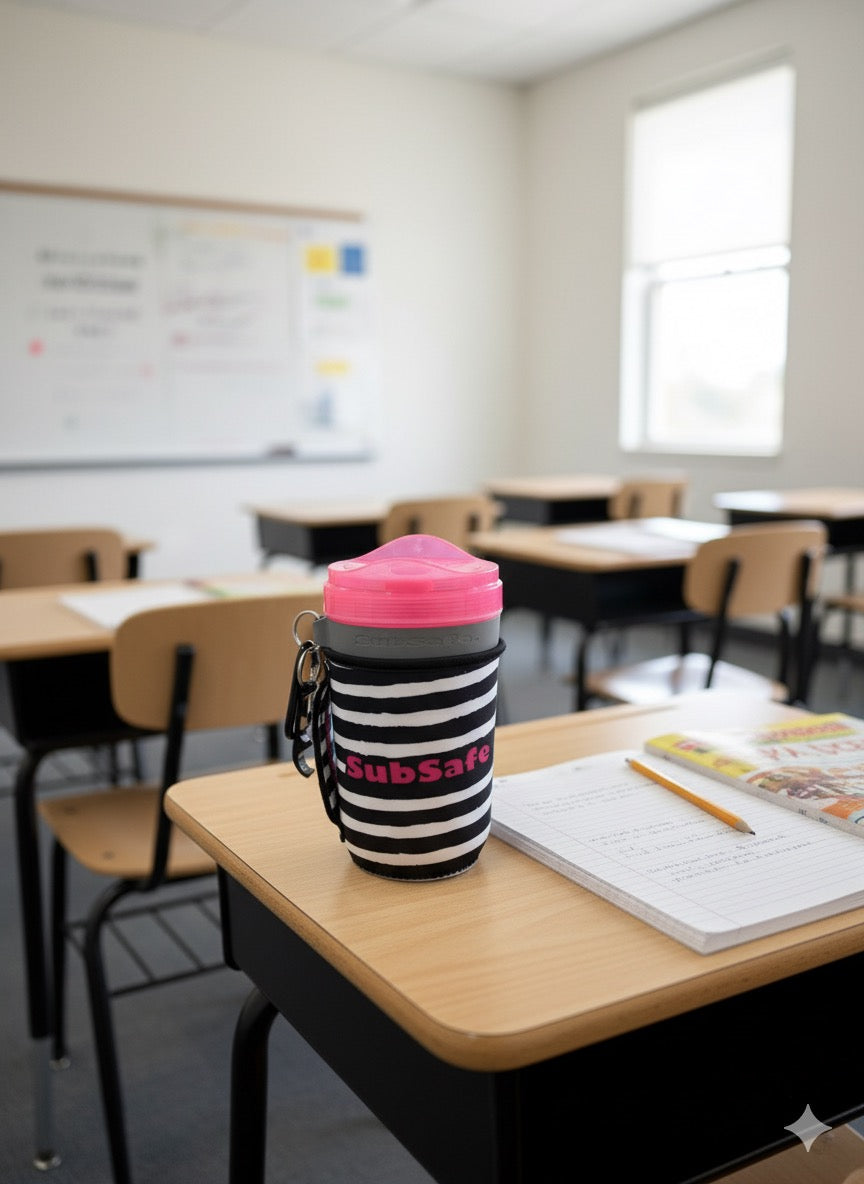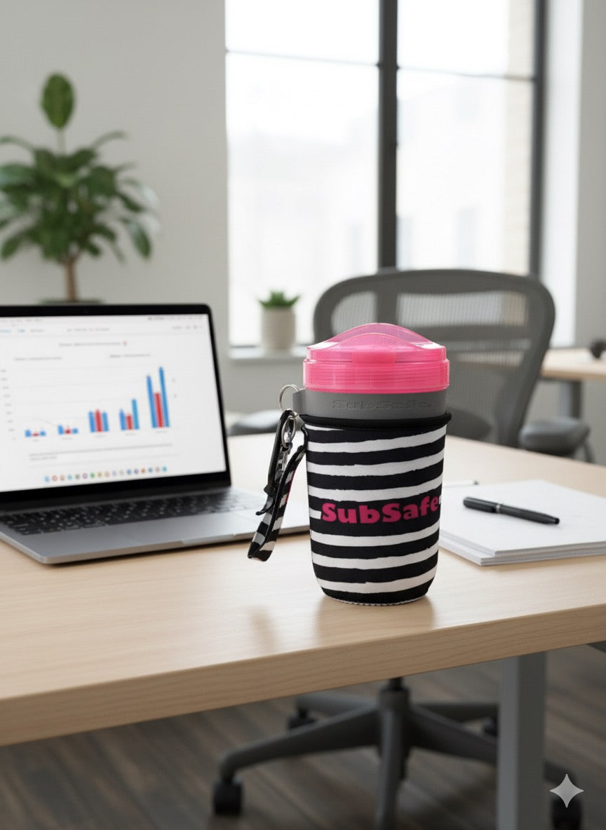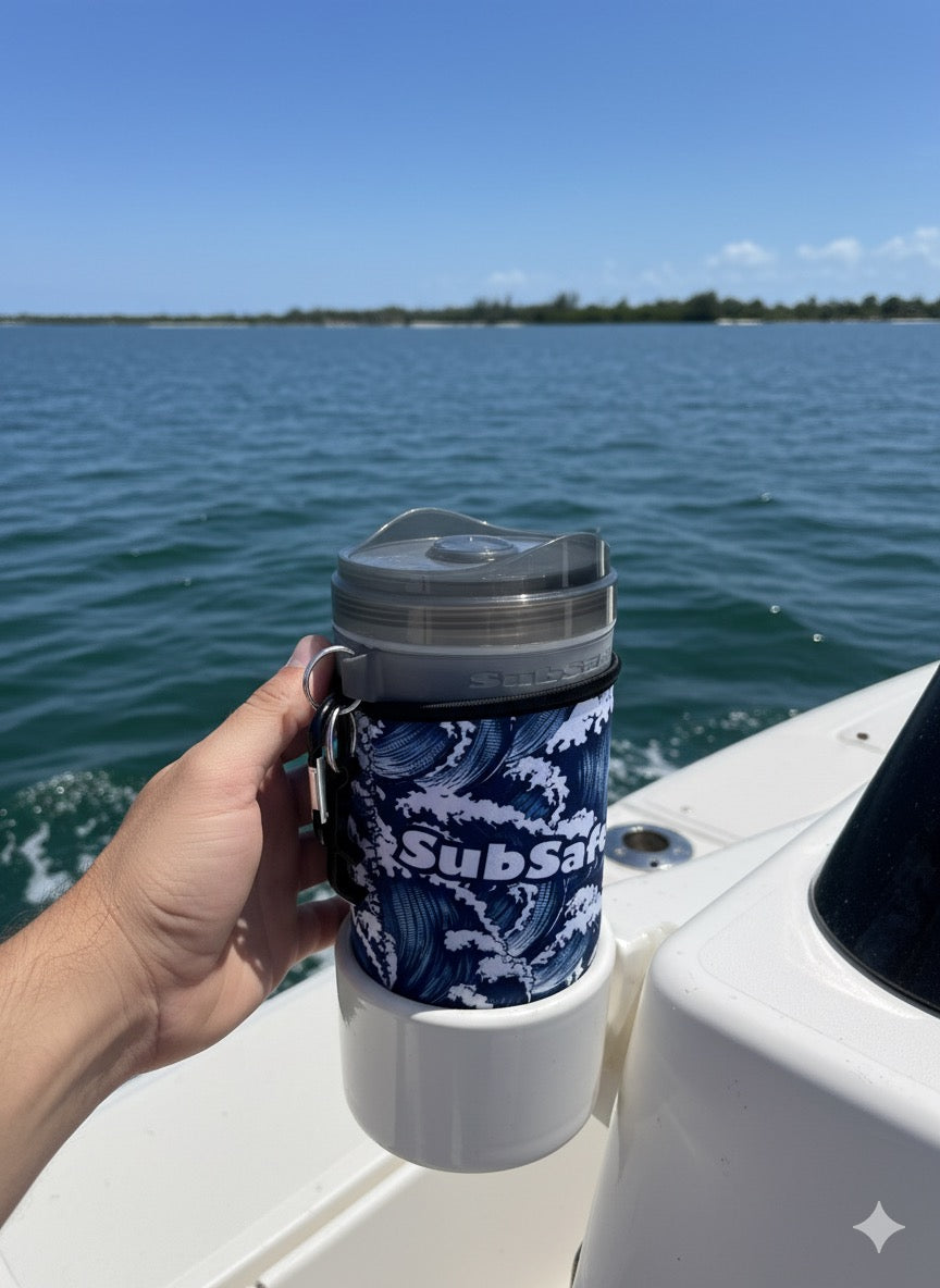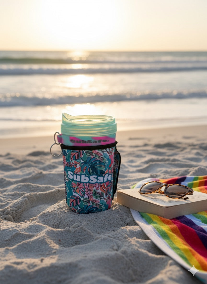 Use your existing SubSafe Base Piece with our drinking lid to convert the perfect LEAK FREE cup. Perfect for on the go! Add a SubSafe strap with the carabiner clip to attach to beach bags, backpacks, gym bags, etc!