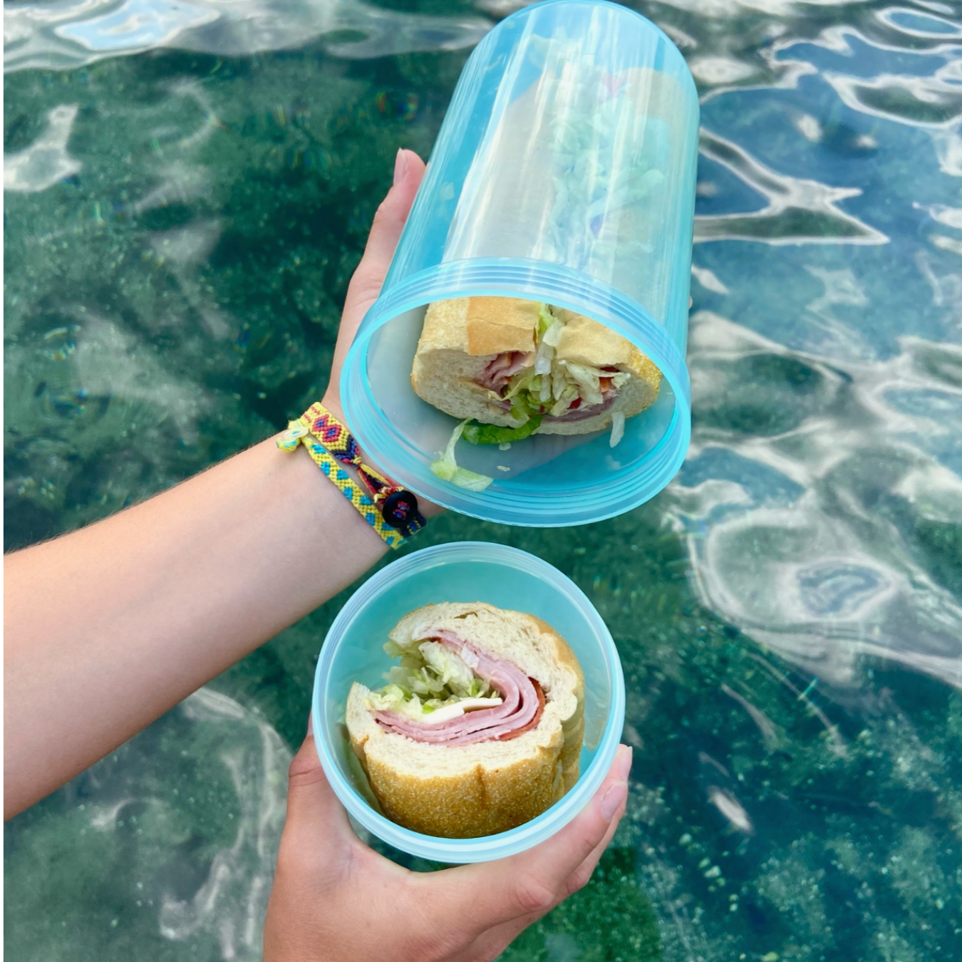With its ingenious multi-purpose design, SubSafe can also be used as a cup or bowl, or after finishing your fresh, delicious sandwich, it can keep your keys, wallet, and phone safe. Whether it’s out on the water, at the park, or in the break room, SubSafe keeps your sub sandwich safe, never soggy.